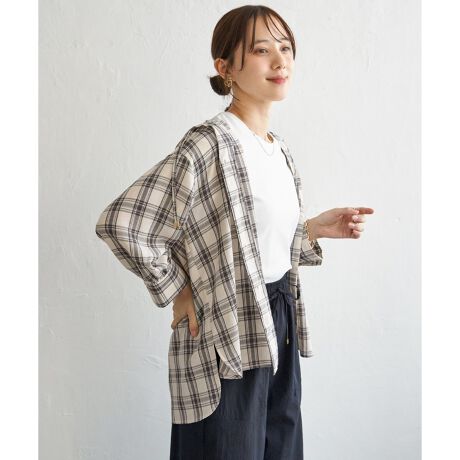 フロントボタン仕様で、トップスとしても羽織りとしても使える着回しやすいデザイン。