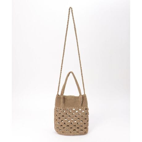 [型番:30294867]透かし編みで仕上げた、軽やかな印象のショルダーバッグ。ショルダーと手持ちの2WAY仕様で、シーンに合わせて持ち方を変えられます。内側には塩化ビニル素材を使用し、使いやすさにも配慮しました。【素材】ブラック・ベージュはやわらかいポリ紐・シルバーはツヤのあるラメ糸。【デザイン】手持ち・ショルダー2WAY【ポイント】・内装がビニル素材の裏地付きで、物が編みから落ちない・マグネット付き・縦にペットボトルも収納可能なサイズ