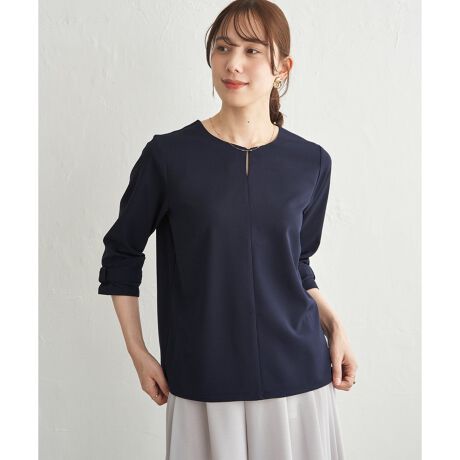 さらりとしたドライタッチの素材で仕立てた袖デザインブラウス。