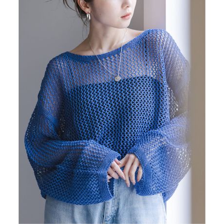 大きめの編地にざっくりと編んだ透け感が可愛いショート丈ニットプルオーバー。