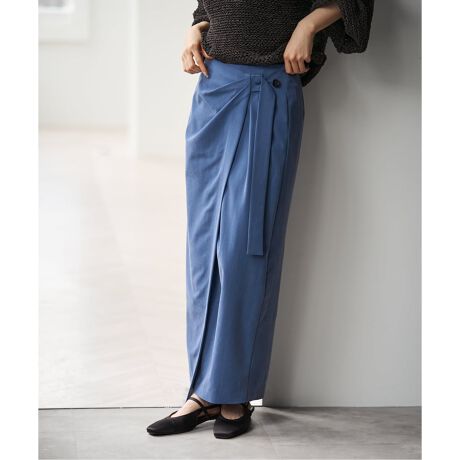 デイリーに穿けるように、フロントは重なっている仕様にしているので肌は見せすぎず、後ろスリットで足さばきはしやすいようにデザイン。