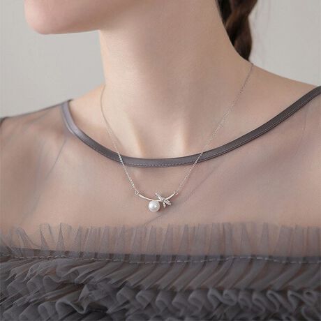 鎖骨に咲く光の結び目。パールとリボンが奏でる、至高のフェミニティ