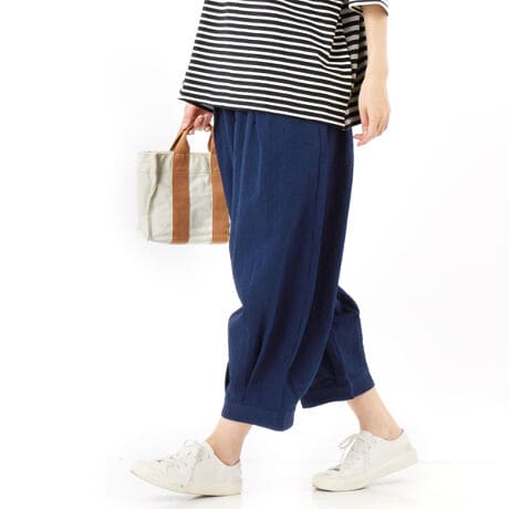 【素材】生地の表面感が凹凸した特殊な生地はサラッとした肌触りと見た目以上の軽やかさがポイント。程よい伸縮性もストレスフリーで◎。【デザイン】フロントに大きくタックを取りヒップや太もも周りにゆとりを持たせたバルーンシルエット。裾にタックを取りシルエットのアクセントをつくっています。生地の凹凸感で伸縮性抜群のパンツはキレイ見えしながらも履きやすいアイテムになっています。*0,1サイズですがこちらの商品はユニセックス商品です。【ブランド情報】FRAPBOIS/フラボア2001年にブランドスタート。「大人げない大人の服」をコンセプトに、大人が着るリラックスしたデイリーウェアを提案するコレクションブランド。レディースとメンズのアイテムをご用意しています。