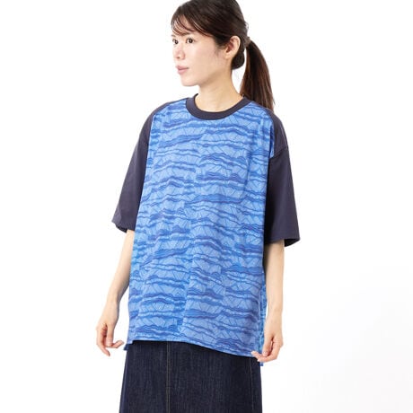 【素材】肌触りの良い綿の天竺にオリジナルのマリンテイスト柄をプリントした素材。海辺の波や夜空の星をイメージした繊細な柄は色の重なりが特徴です。そこに無地の天竺を組み合わせています。【デザイン】ベーシックなTシャツは少しリラックスしたシルエットが特徴的。肩の切り替えをあえて前に持ってくることで配色のアクセントを作っています。*こちらの商品はユニセックス商品です。【ブランド情報】FRAPBOIS/フラボア2001年にブランドスタート。「大人げない大人の服」をコンセプトに、大人が着るリラックスしたデイリーウェアを提案するコレクションブランド。レディースとメンズのアイテムをご用意しています。