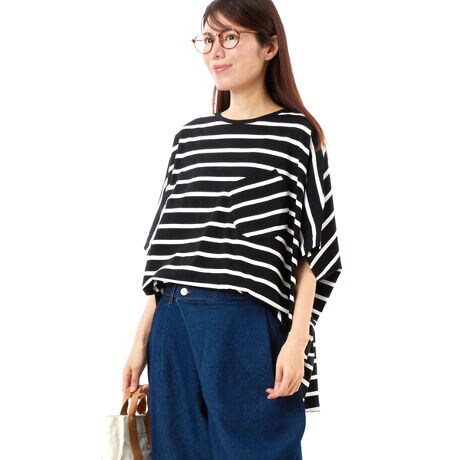 【素材】程よい厚みとキレイな表面感が特徴のボーダー柄の生地。マリンテイストの配色とカラーが涼しげで◎【デザイン】大きな半円状に作られたゆったりとしたワイドシルエットがポイントのカットソー。大胆なパターンニングでシンプルな中にも面白いシルエットに仕上がっています。【ブランド情報】FRAPBOIS/フラボア2001年にブランドスタート。「大人げない大人の服」をコンセプトに、大人が着るリラックスしたデイリーウェアを提案するコレクションブランド。レディースとメンズのアイテムをご用意しています。