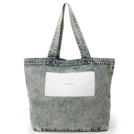 【素材】しっかりとしたデニム素材を使い、特殊な加工で色のムラを出したケミカルと、ブリーチ加工でキレイな色目を表現したブルーの2色展開。大胆にプリントされた「パーキー」がポイントです。【デザイン】大きめのマチ付きのトートバッグはデニム素材のざっくりとした風合いと加工によるくたっと感がポイント。パーキーのプリントも大胆な大きさで可愛いです。インナーにも簡単なポケットが付いていたりとシンプルながら使いやすいアイテムです。*デニム素材の特質状、色落ちしますので色の薄いものとの接触や濡れた状態での放置には注意してください。【ブランド情報】FRAPBOIS/フラボア2001年にブランドスタート。「大人げない大人の服」をコンセプトに、大人が着るリラックスしたデイリーウェアを提案するコレクションブランド。レディースとメンズのアイテムをご用意しています。
