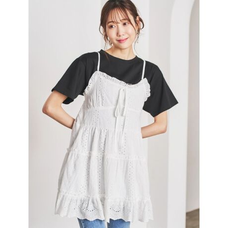 花柄刺繍ティアードキャミチュニック