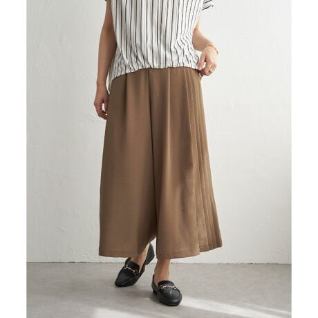 ・サイドに施したプリーツがきれいめ見えする、フェミニンなガウチョパンツ
