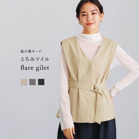 【 抜け感モード 】とろみツイル・フレアベルトジレ