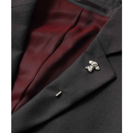 普段のスーツもラペルピンを添えるだけで華やかな印象に。