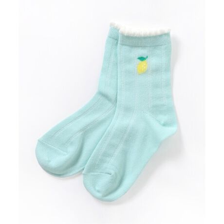 apres les cours(アプレレクール)のタイツ・ソックス「フルーツ柄吸水速乾クルーソックス」は、足元からおしゃれになれるデザイン。おようふくとのスタイリングも楽しんで。
