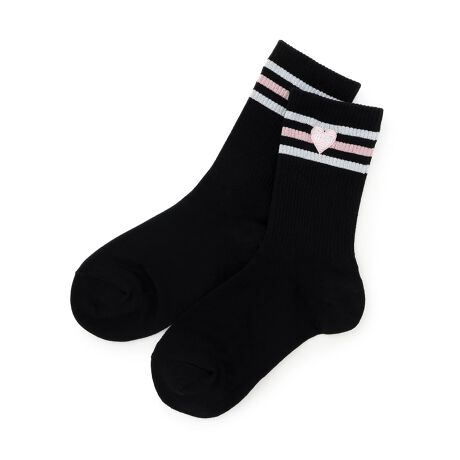 配色ラインとハートロゴの組み合わせがスポーティーなソックスです。コーディネートしやすい短め丈で、普段使いに重宝します。アンクルには程よいフィット感のリブデザインを採用。スクールアイテムとしてもぴったりです。【抗菌防臭】