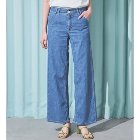 人気急上昇中のSEMI WIDEと同フィットを採用した、腰周りがコンパクトでミッドライズのすっきりとしたワイドシルエットです。ワイドベルトデザインがウエストをしっかりとマークし、腰位置を高く見せることで、抜群の脚長効果を演出します。フロントに配された大きめな木製ボタンは、軽やかで涼しげな印象をプラス。夏のシンプルな着こなしに、洗練されたアクセントを加えてくれる一本です。