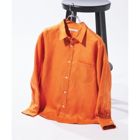 柔らかな風合いの平織りリネン素材を使用したレギュラーカラーシャツ。