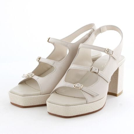 サイド部分はカバーしつつ、甲に施した3本の華奢なベルトデザインで抜け感をプラスした一足。