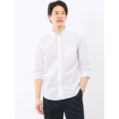 衿立ちの良いボタンダウンの7分袖シャツです。スラブ糸による味わい深い表情がポイント。キチンと見えするので、プライベートやオフィスカジュアルにオンオフ兼用で大活躍してくれます。左胸ポケット付き。