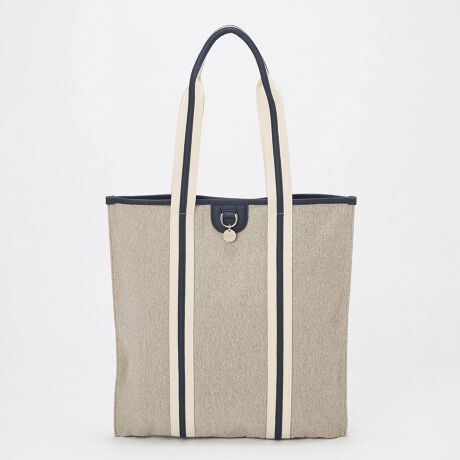 キャンバス地やデニム地にレザーをあしらったハンドルとゴールドカラーの金具で上質感をプラス。