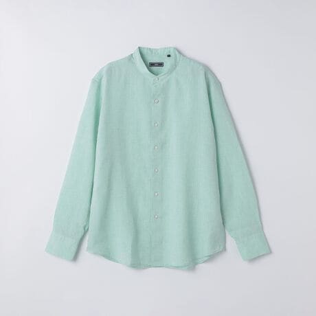 SHIPS: ウォッシュド リネン バンドカラー ソリッド シャツ