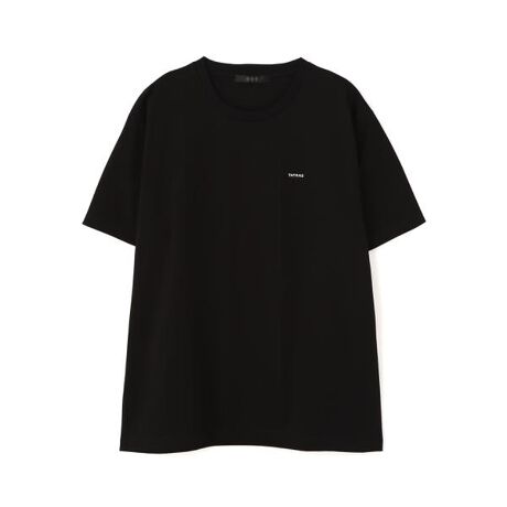最大の見どころは、胸元に配された「シルバーのTATRASロゴ」です。シンプルながらもエッジの効いた輝きが、コーディネート全体に都会的なアクセントを加えています。
