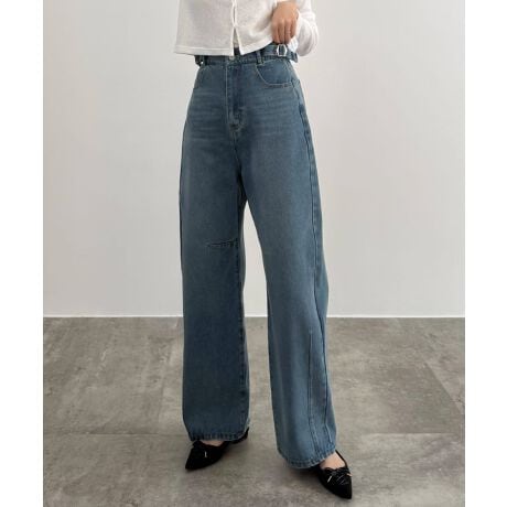 CENEA サイドベルトバレルレッグデニム