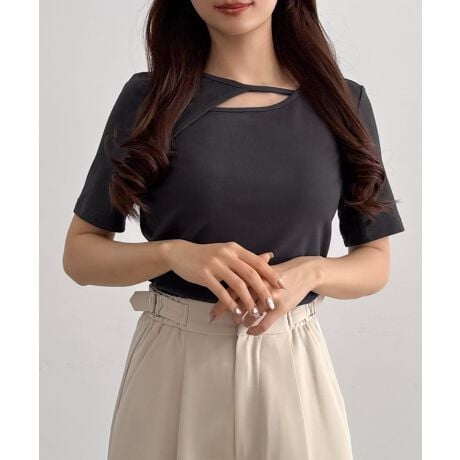 CENEA 薄手カットアウトデザイン半袖カットソー