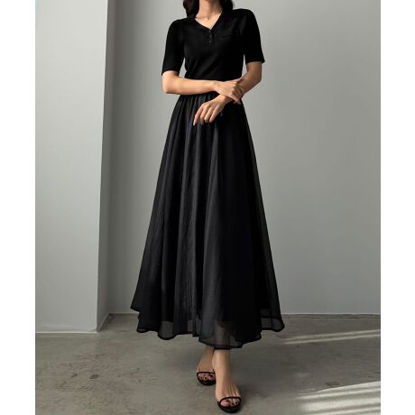 Louere ポロニットドッキングシアーフレアワンピース