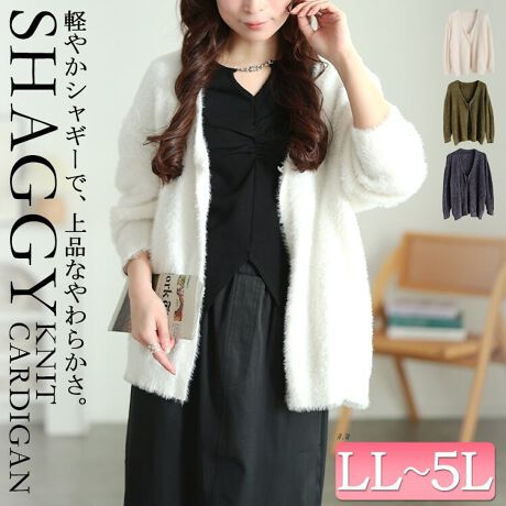 【大きいサイズ】 深Vネックシャギーニットカーディガン 大きいサイズ レディース トップス カーデ