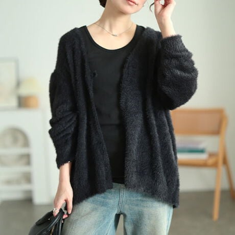 【大きいサイズ】 深Vネックシャギーニットカーディガン 大きいサイズ レディース トップス カーデ