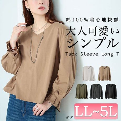マルイウェブチャネル   /   ゴールドジャパン   /   トップス   /   Tシャツ・カットソー   /   【大きいサイズ】 キャンディスリーブVネックコットンプルオーバー 大きいサイズ レディース トップ