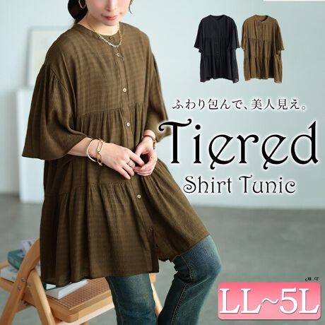 【大きいサイズ】 フレアスリーブティアードチュニック 大きいサイズ レディース チュニック フレア