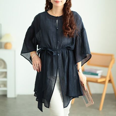 ふんわり軽やかな楊柳シアー素材を使用した、涼しげなガウンカーディガン。身幅にもゆとりを持たせたAラインデザインが、体のラインを拾わずふんわり包み込みます♪ウエスト部分にはリボン付きで、結んでシルエットをアレンジすることも可能◎ワンピースのようにも、羽織りとしても楽しめる着回し力の高い一枚です。