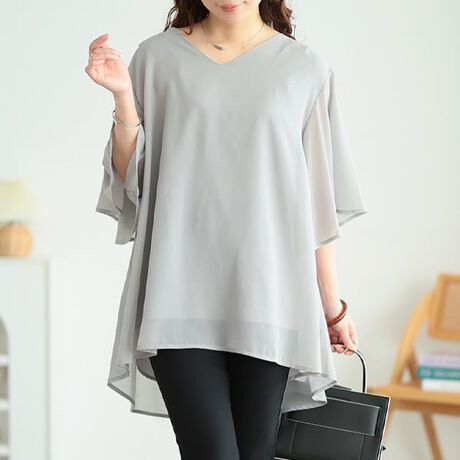 【大きいサイズ】 シフォンレイヤードフレアスリーブチュニック 大きいサイズ レディース チュニック