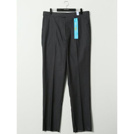 キチンと見えするルックスと楽ちんな穿き心地を兼ね備えた、ノータックのテーパードパンツです。ウエストストレッチで着脱もスムーズ、着席時も窮屈感がありません。センタープレス加工、前ボタン・ホック式、フロントファスナー、ベルト通し付き、前後ポケット付き、裾部分は未加工です。
