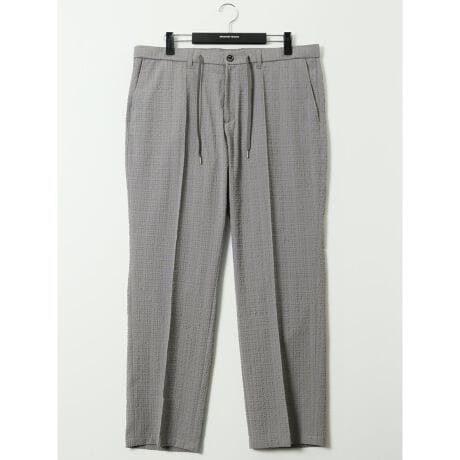 裾に向かって緩やかにテーパードを効かせたシルエットです。センタープリーツ加工により脚長効果があり、すっきりとしたラインを演出してくれます。裾部分は加工済みです。(股下78cm・ミシンたたき)