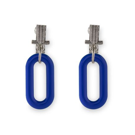 JLロゴからオーバルパーツが揺れるイヤリング。