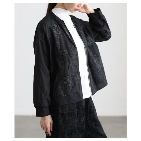 【アウター】 レディース ブルゾン 花刺繍 ジップアップ 長袖 羽織り ジップアップ 春 夏