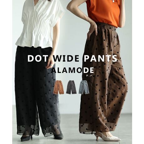 フロッキードットが浮かび上がる表情豊かなワイドパンツ。シアー生地を重ねた軽やかなデザインで、動くたびにニュアンスのある雰囲気に。シンプルなトップス合わせでもコーデが映える一本です☆
