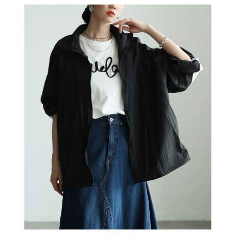 ナイロン素材で軽やかに羽織れるトラックジャケット。スポーティーな雰囲気がありつつ、シンプルなデザインで意外と大人世代にもすっと馴染みます。コーデに程よい抜け感をプラスしてくれる一着です!