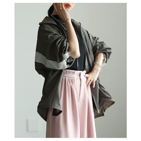 ナイロン素材で軽やかに羽織れるトラックジャケット。スポーティーな雰囲気がありつつ、シンプルなデザインで意外と大人世代にもすっと馴染みます。コーデに程よい抜け感をプラスしてくれる一着です!