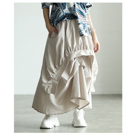 【スカート】 レディース ロング丈 変形デザイン レイヤード ウエストゴム 体型カバー カジュアル