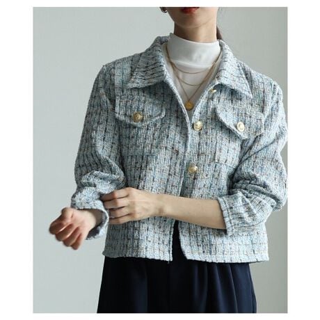 上品でエレガントな雰囲気が漂うツイードジャケット。きちんと感がありながら、デニムなどのカジュアルスタイルにも相性抜群。さっと羽織るだけで大人の装いが完成する一着です☆