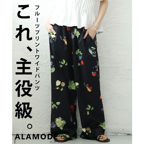 マルイウェブチャネル   /   サワアラモード   /   すべてのパンツ   /   パンツ   /   【パンツ】 フルーツ トロピカル ワイド ロング ドロスト ウエストゴム ハイウエスト ブラック 黒