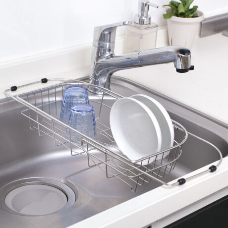 ●シンクのサイズに合わせて伸縮できる水切りバスケットです。