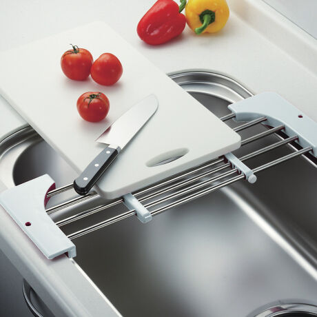 [型番:148733]【デザイン】●作業スペースが広がるシンク用調理台です。●金属部は水に強くさびにくい18-8ステンレス鋼を使用しています。【スペック】サイズ/幅17×奥行44.5〜68.5×高さ2cm重量/約290g内容量/1個材質/金属部:18-8ステンレス鋼樹脂部:ABS樹脂生産国/中国製パーツ別耐熱温度/ABS樹脂:80度耐荷重/約3kg