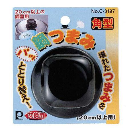 [型番:169501]【デザイン】●ネジで簡単に取り付けられる交換用の角型鍋つまみです。●20cm以上の鍋蓋に対応しています。●ガラス蓋には使用しないでください。【スペック】サイズ/約高さ3.5cm直径:約7cmネジの径:約5(mm)重量/約60g内容量/1個材質/フェノール樹脂ネジ:ステンレス鋼生産国/中国製