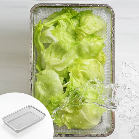 ●足付きで水切れがよく、丈夫なステンレス製の角型ザルです。