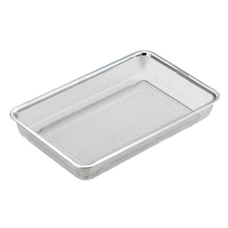 ●足付きで水切れがよく、丈夫なステンレス製の角型ザルです。