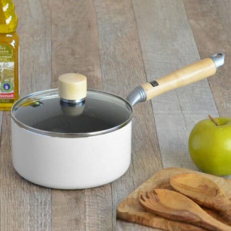 ●キッチンにやさしく馴染むホワイト×木目調のお鍋です。