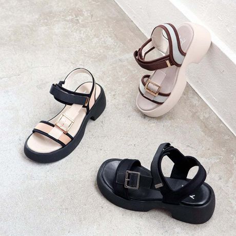 モダンな厚底ベルトサンダル。