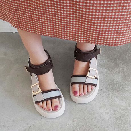 モダンな厚底ベルトサンダル。